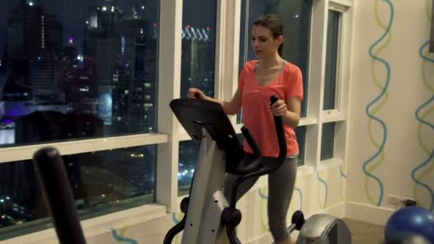 Woman Exercising On Elliptical Machine In Gym Super Slow Motion Stock Footage