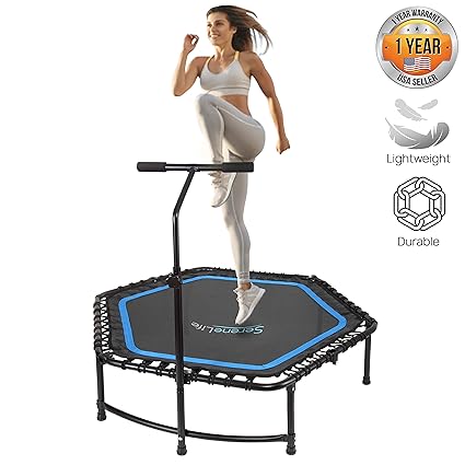 Serenelife Fitness Exercise Rebounder Mini Trampoline 48 Inch Jump Exercise Equipment With Adjustable Handle For Adults Ultimate Indoor Outdoor